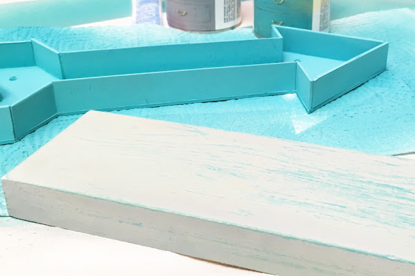 La novedad de este taller es que pegamos nuestras figuras luminosas a una base de madera a la que aplicamos un aspecto vintage. Lo único que hay que hacer es dar una primera mano con una pintura acrílica, bien una evo o una basic, y dejar secar. Luego, damos una segunda capa de chalk paint y pasados unos 5 minutos, retiramos la pintura con una toallita húmeda para lograr ese acabado desgastado. (Si os gusta la técnica, os grabo un vídeo con el paso a paso, hacedmelo saber en comentarios o por redes :) )