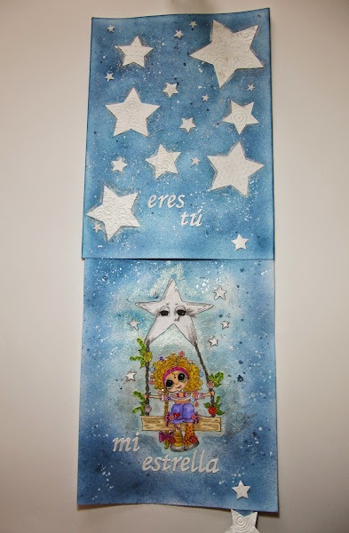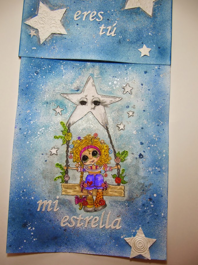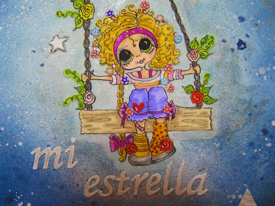 La muñequita, como he dicho es un sello digital de My Besties que la recorte para integrarla en el fondo estrellado