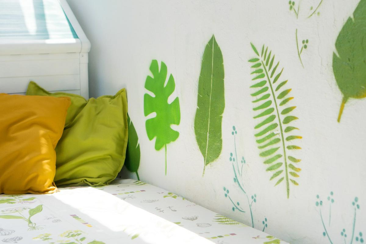 También blanqueamos las paredes y pintamos más hojas para animar el espacio.