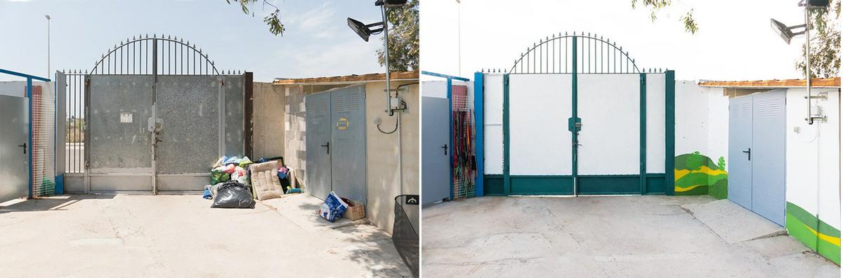 Nos centramos en cuatro zonas (la protectora es inmensa) que fueron el muro exterior, el acceso, el acceso al edificio y el porche de Halo. Os dejo algunas fotos de los antes y después para que alucinéis pepinillos con lo que puede hacer la pintura y algunos detalles.