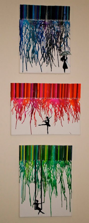 Y que me decis de los cuadros, se hacen auténticas maravillas, se pegan los crayons en un lienzo y con ayuda de un secador se van deshaciendo las ceras de la manera que mas os gusten.