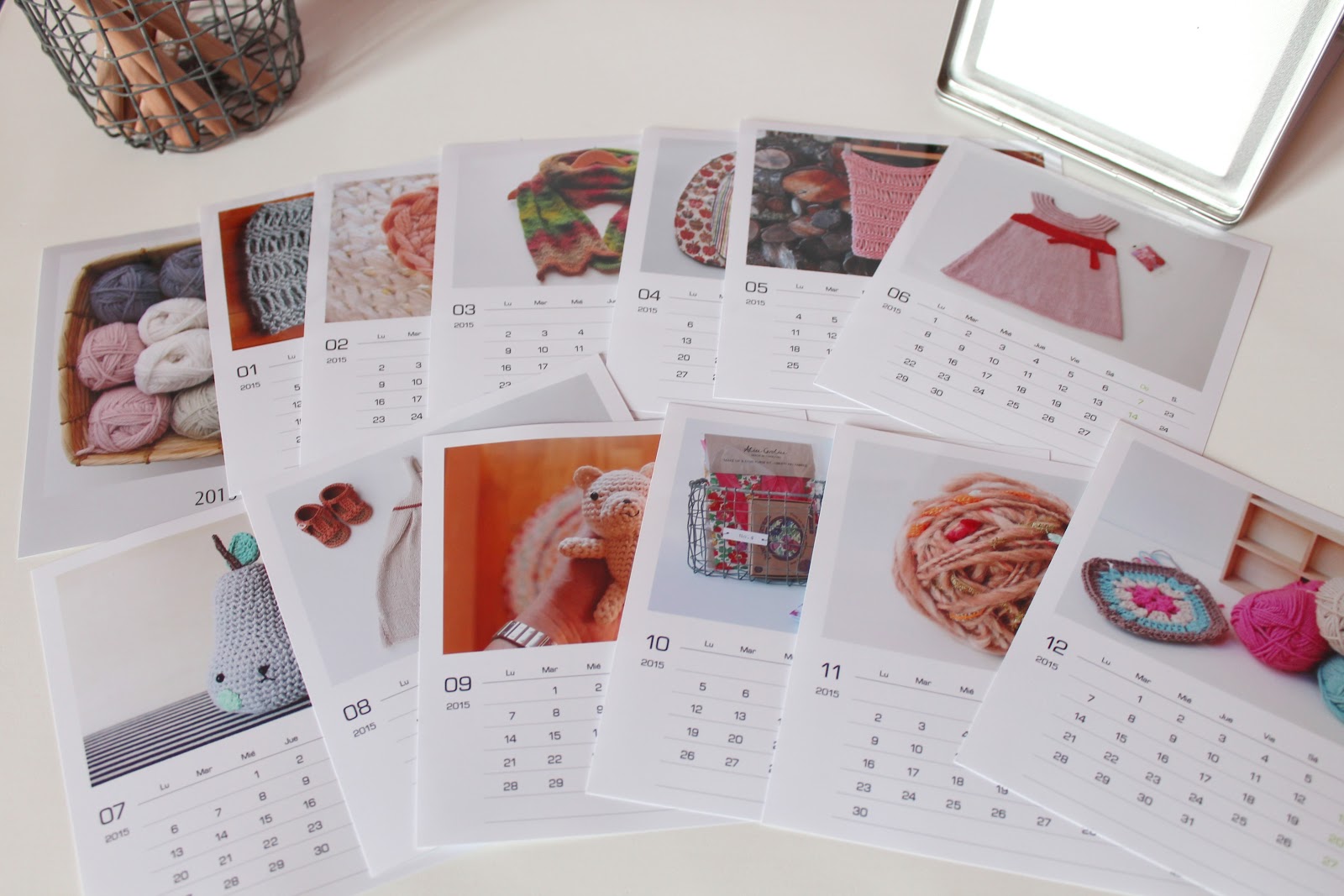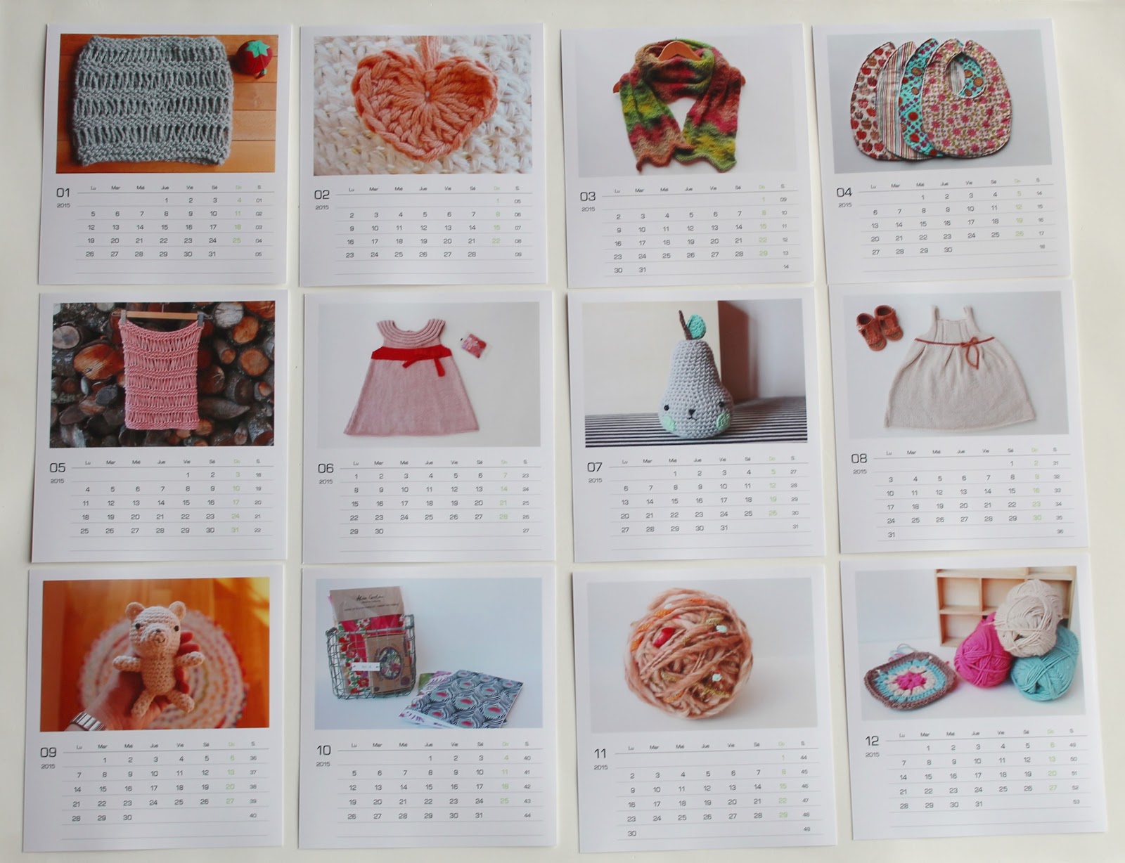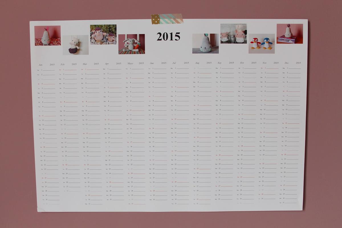 También decidí coger otro calendario, un calendario anual en A3 para poder ver todo el año de un vistazo. Este calendario es ideal para colocar en la nevera y en casa ya lo conocemos como el calendario de los amigurumis porque en las fotos aparecen algunos de los que he hecho a lo largo del año.