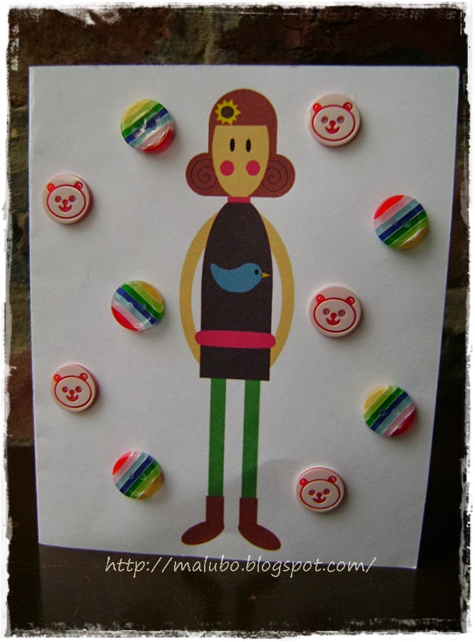 Martín hizo el diseño en el computador ( cosa que también le gusta mucho ) y Manue la decoró con los botones. Me fascinó, es muy tilda, con lo que saben ellos cuánto me gustan las tildas y los pájaros. Ya le pedí la imagen, pronto la verán por aquí en el blog ;)