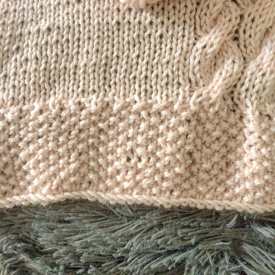 Como veis el elástico es punto de arroz y luego esta tejido todo en punto del derecho o punto jersey con los tres ochos en el centro.