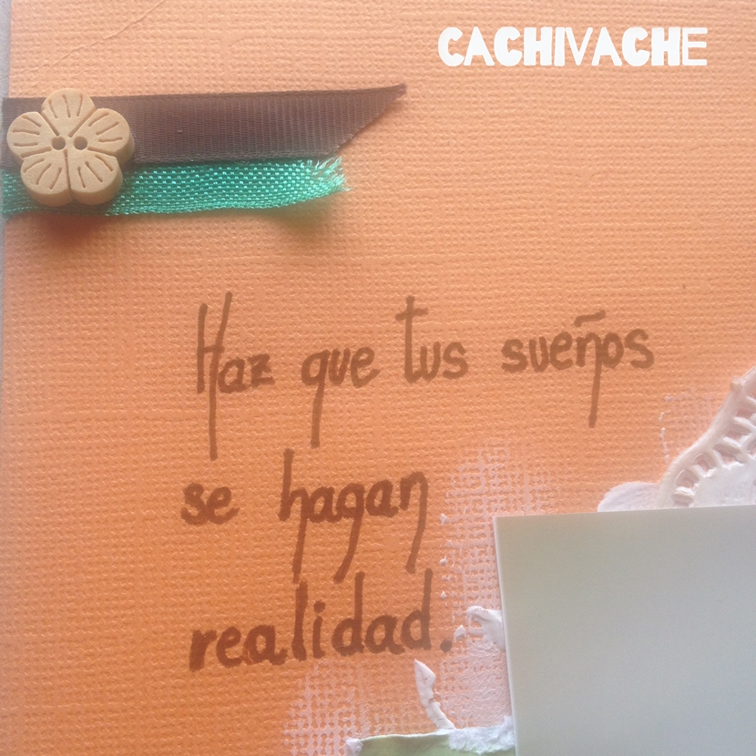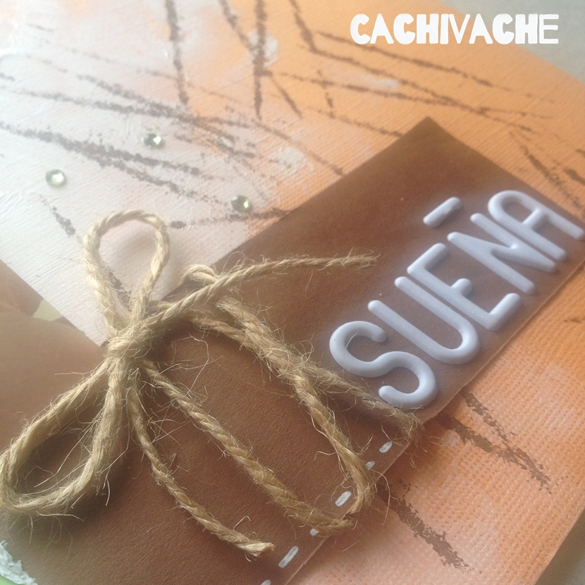 Y comenzamos con las aplicaciones, un trozo de cartulina marrón chocolate en el fondo con un atado y lazada en cuerda de sisal y el título de la página en letras blancas.