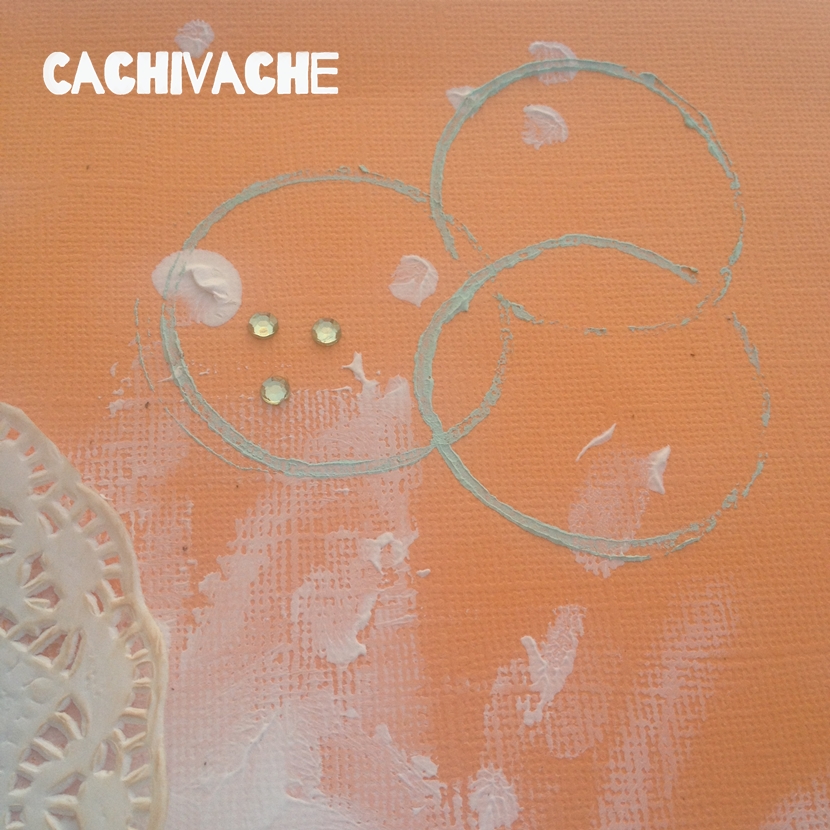 Preparé el fondo, sobre el papel básico color calabaza de 30x30 cm apliqué gesso con los dedos, superdivertido!, incluso dí unos goterrones.