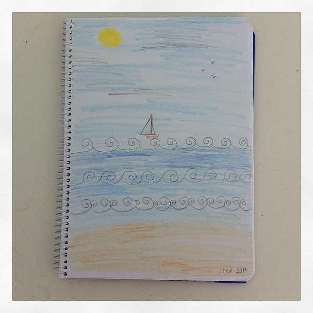 Me he dedicado a dibujar mucho estos días, a leer, hacer sudokus y disfrutar de los niños. Ahora que he vuelto tierra adentro, tengo nostalgia de azules y verano.