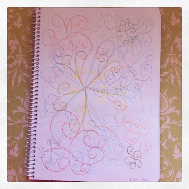 Con este lío de haber estado tantos días sin PC, me había dejado un montón de cosas sin poder enseñároslas. Así que hoy tenemos entrada de libreta azul con doble dibujo. Cuatro fotos al precio de dos. Me pasé todo el verano haciendo volutas. He de reconocer que son muy relajantes. Así que en la entrada del otoño, he seguido en mi línea.