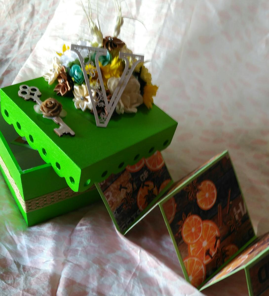 Por supuesto cada uno de mis regalitos, ha sido preparado a conciencia, el primero fué una Caja sorpresa que ya os enseñe en una entrada anterior, donde puse todas las Fotos de sus Nietos(9) y Bisnietos(5) por circunstancias de la vida, no a todos los puede tener cerca .