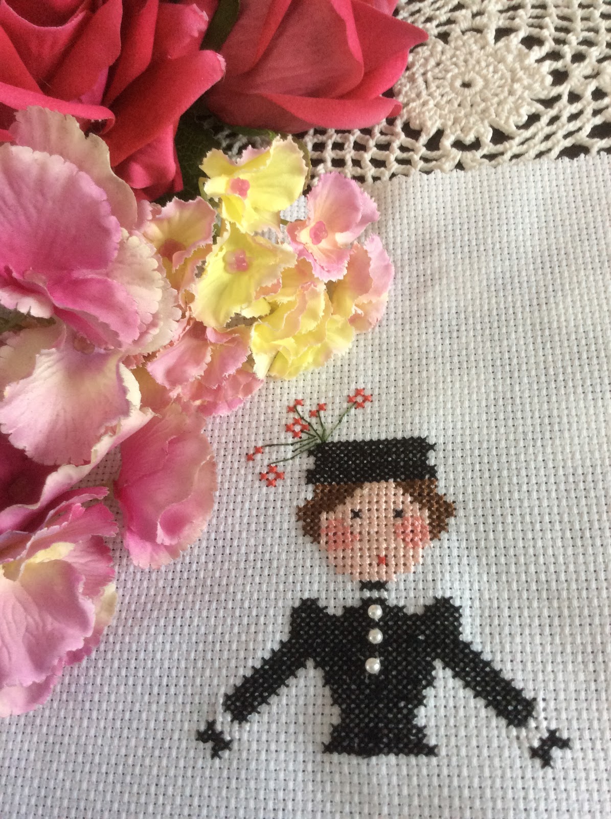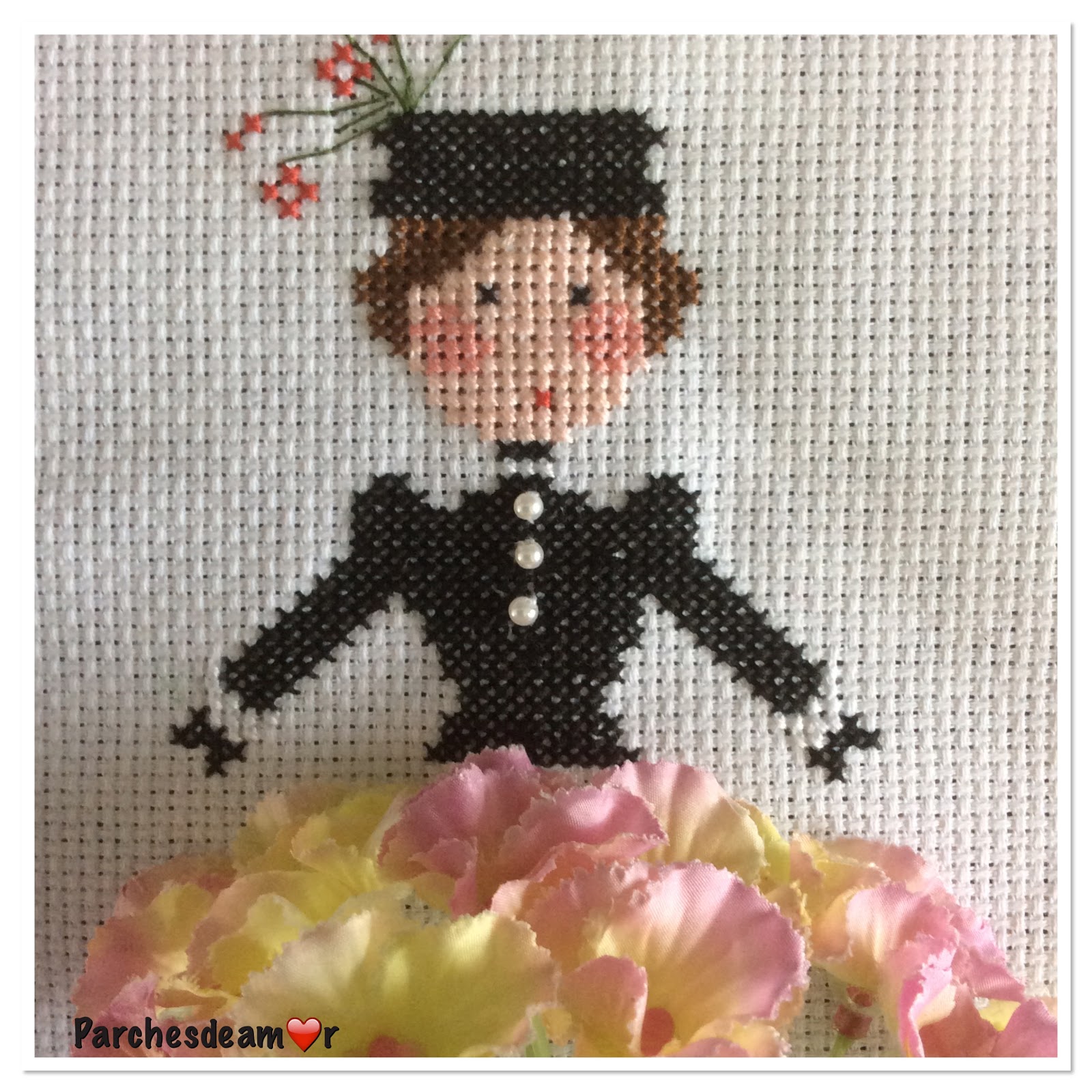Pero como no podía ser de otra manera tuve que poner cartas en el asunto y hacerle una falda floral para que la chica no mostrara sus partes invisibles ........... recordemos que es mágica y sus pies están pero no los vemos jajaja.