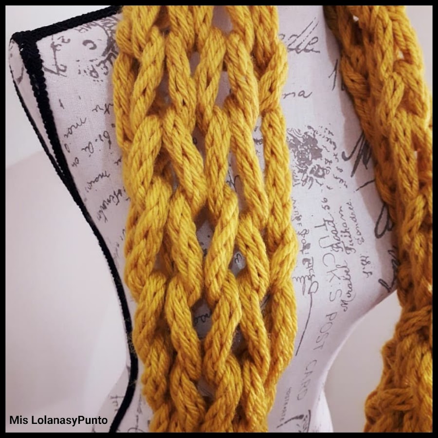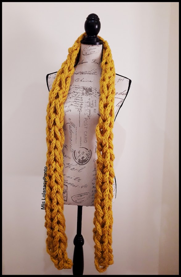 Os dejo Aquí el enlace a otra bufanda que hice de este estilo, pero con una Lana menos gruesa.