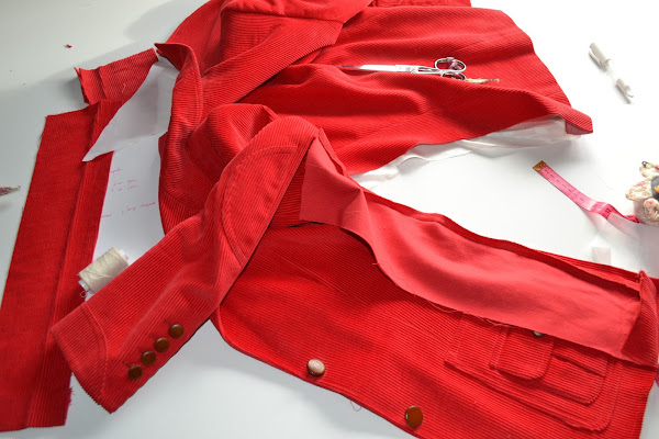 Hace unos años me compre una chaqueta de pana roja, que me enamoro, pero la chaqueta ya me la compre un poco justa, porque me encantó y tenia un precio que no podía rechazar, tenia un buen patrón y quedaba genial, yo pensé que perdería un par de kilos y listo, pero no fue así, en lugar de perder un par de kilos, cogí algún kilo más y lo que en principio era un poco justo, acabó siendo una chaqueta pequeña, pero que me encantaba y que yo quería seguir utilizando.