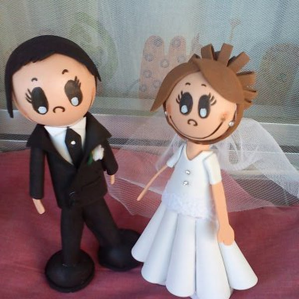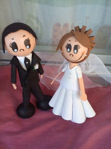 Hola amigos hace tiempo que no publicaba nada . He hecho esta pareja de fofuchos novios para unos amigos que se casaron el sabado pasado .Son lo primeros que hago y espero hacer mas. Besos y hasta pronto.
