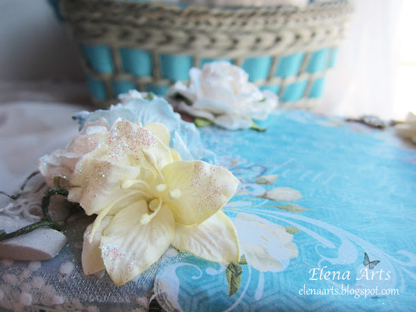 The top is decorated with beautiful cuts of Bo Bunny, all are in blue tones, very fresh and romantic :) Different flowers serve as embellishment.