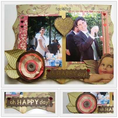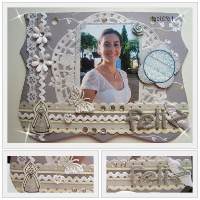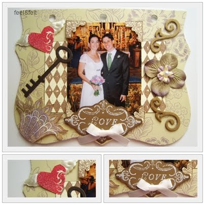 Despues de muchas vueltas, decidí enfrentarme y coger al mini por las tapas, y es que para ser sincera, hacer un mini era algo que me imponía un poco, no sabía si iba a ser capaz de rellenar tantas hojas, y que el conjunto quedara bien, acostumbrada a mis marcapaginas, a mis tarjetitas, para mi era un gran reto, pero he quedado satisfecha con el trabajo realizado. Esta album va dedicado a mi amiga Reyes, que se casó el mes pasado. Aunque intenté conseguir buenas fotos fue imposible, y he tenido que apañarme con las que yo misma hice en la celebracíón. Espero que disfruteis de cada detalle tanto como yo mientras lo hice...