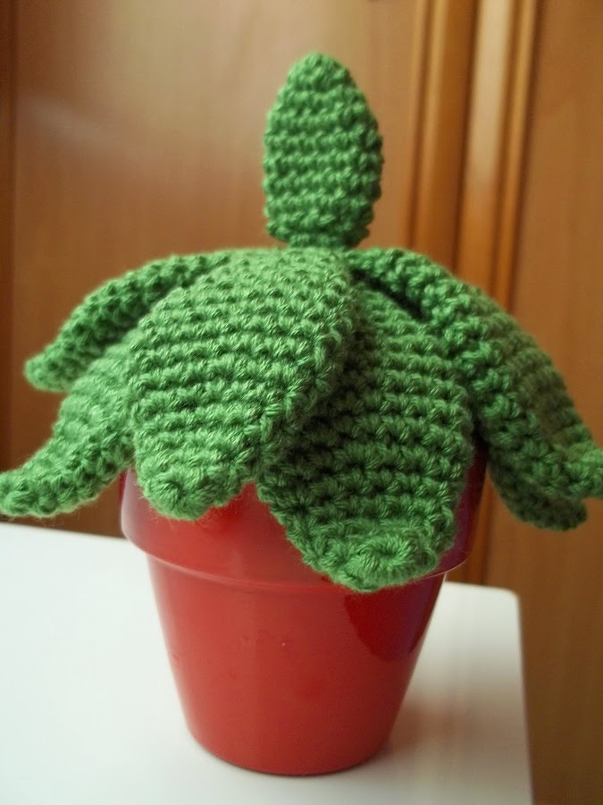 Hoy vengo con una pequeña gran fusión: una planta decorativa que nunca se muere, ni se seca, ni se pudre ¡¡tachán!! una plantita amigurumi. Es muy básica, se le pueden añadir flores y diferentes colores pero quería tener una muy sencilla junto a mi ordenador ¿qué os parece? ¿os gustaría tener una igual? ¿ya sabéis cómo conseguirla? ^^