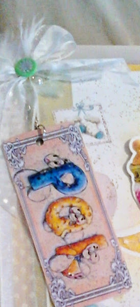 Finalmente le hice una cajita descubierta para colocar el álbum. La cinta de raso es para ayudar a sacarlo.