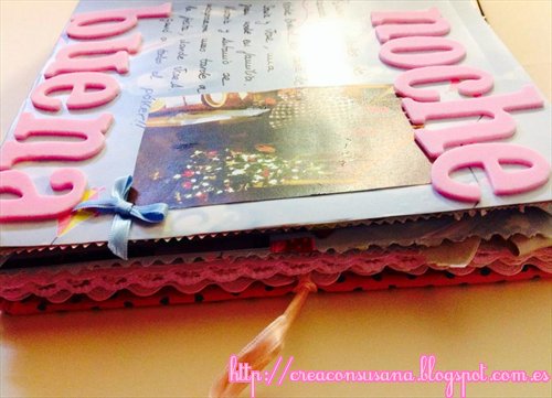 Y así fue, comencé a recapitular imágenes y hacer el "boceto" de mi album. Descubrí una palabra que se repetía en la mayoría de web que leía?scrapbook, scrapbooking, scrap? y pensaba ¡Será alguna marca de libros o revistas! E inmediatamente busqué su significado en wikipedia: "libro de recortes", y dije? eureka!! Sin ninguna duda, era lo que buscaba.