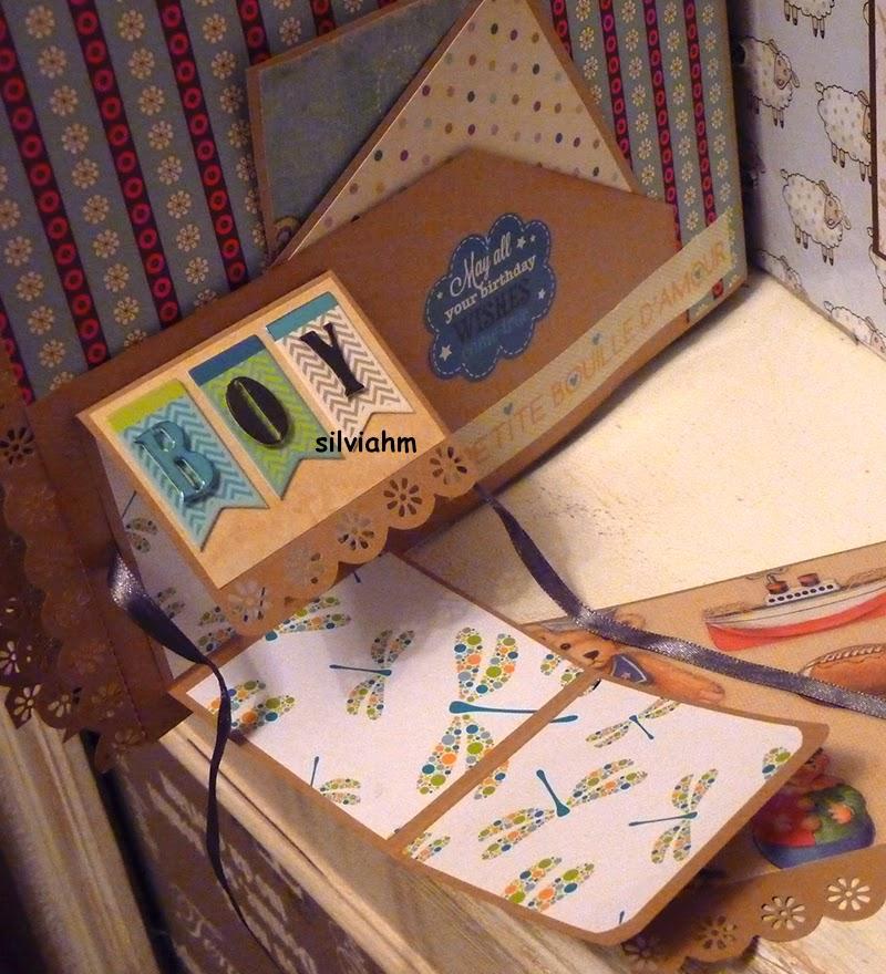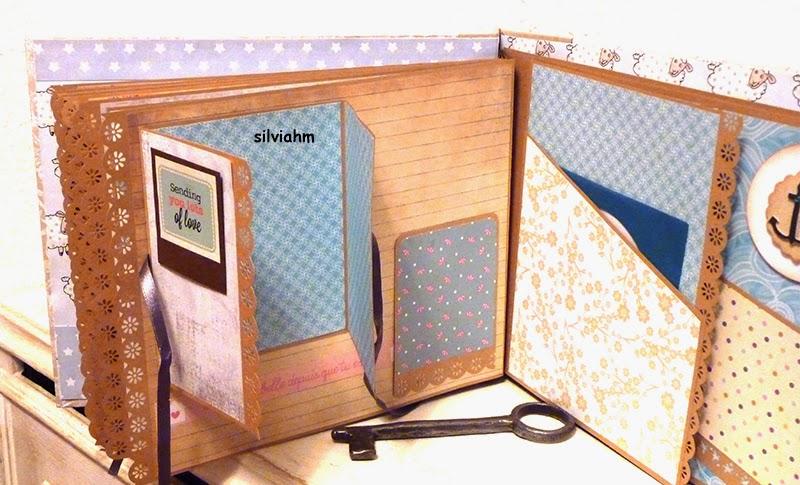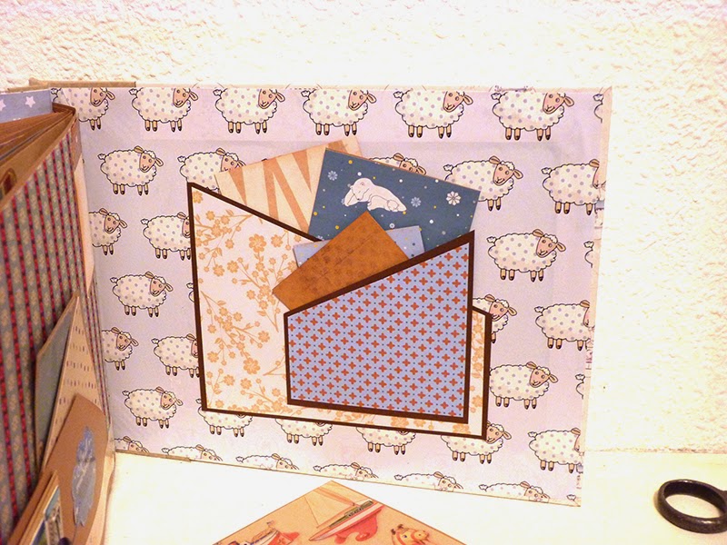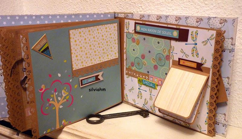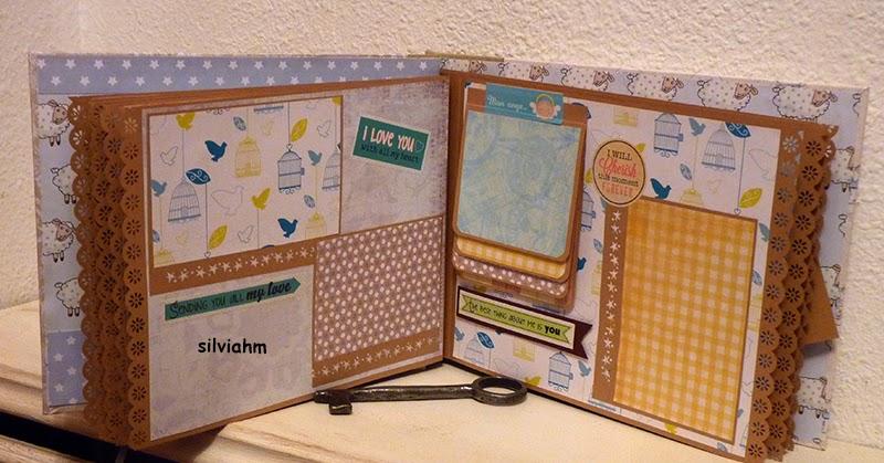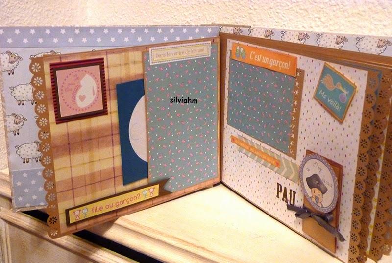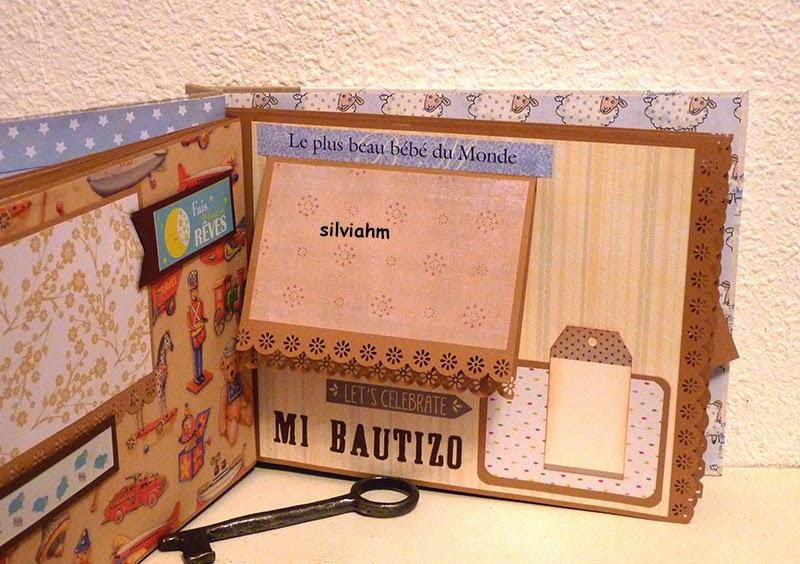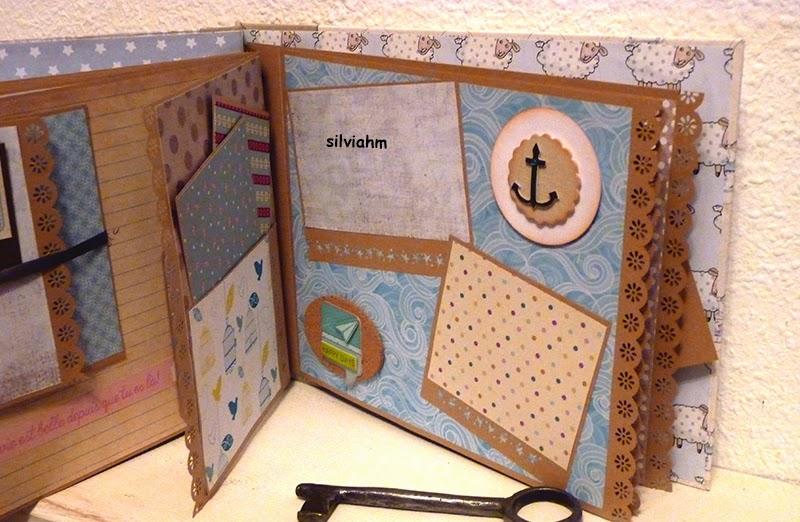 Este álbum sale hoy para Barcelona. Es otro de los encargos navideños. Es un álbum con encuadernación japonesa, 11 hojas tamaño folio, con mucho desplegable, tarjetas en cascada, tags muy personalizados. La colaboración con la mamá ha sido mucha, hemos estado en contacto comentando ideas, viendo papeles, detalles a añadir.. Creo que los proyectos de scrapbooking son muy personales, por lo que me gusta ceñirme lo más posible a la idea que tiene quien lo encarga. Así, pensamos en hojas para cuando ella estaba embarazada, con espacio para eco en 4D, otra con datos del nacimiento, navidad, carnavales, el bautizo, un dia en la playa, primeros pasos, primera papilla, fotos con papá y mamá y , en la última, su primer cumpleaños. Tiene cabida para 71 fotos de distintos tamaños, casi todas para fotos de 10x15 y otras más pequeñas en los desplegables.