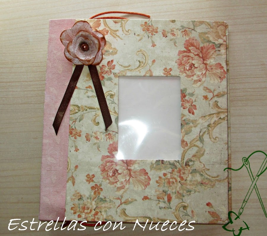 Había dos álbumes para hacer... uno con colores mas pasteles y otro con papeles con estampados vintage que fue el que yo hice, y con una ventanita para meter una foto.