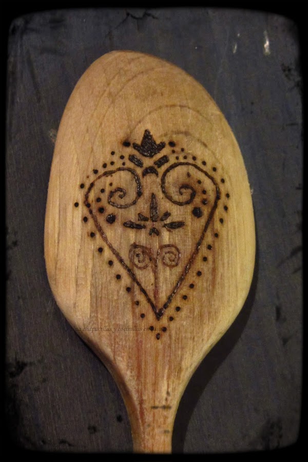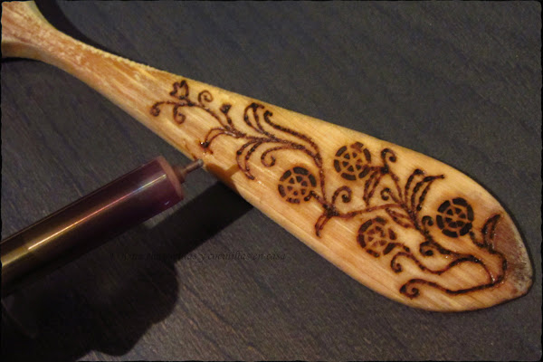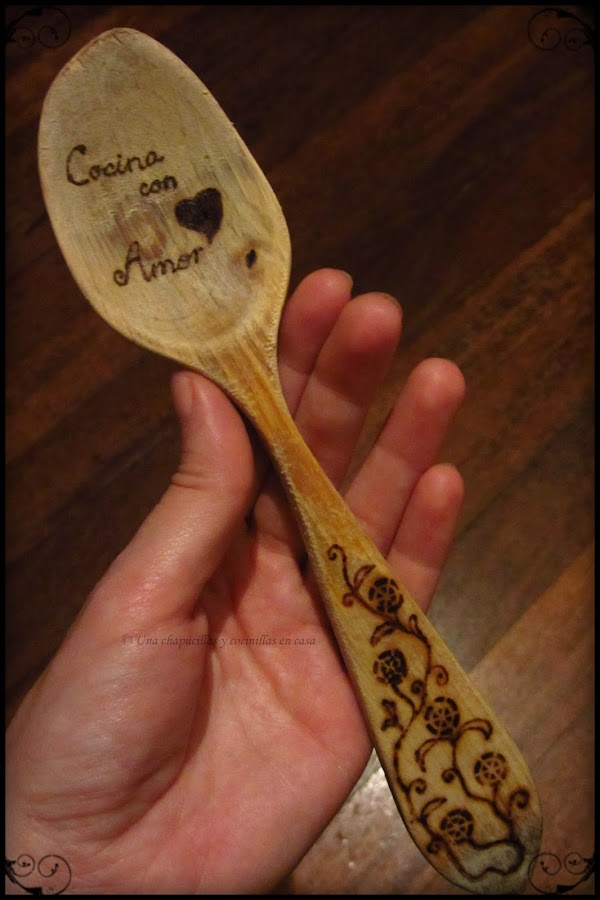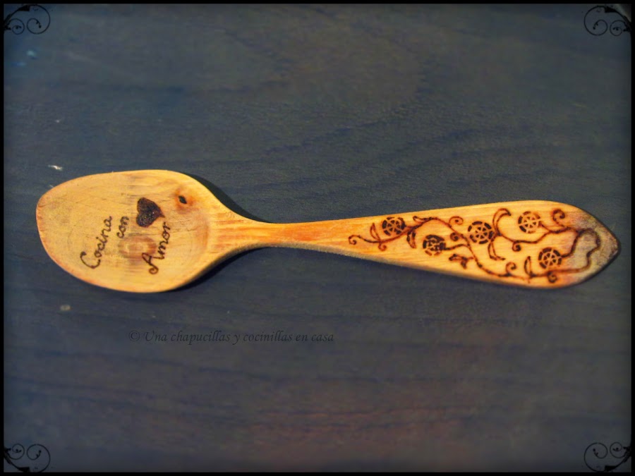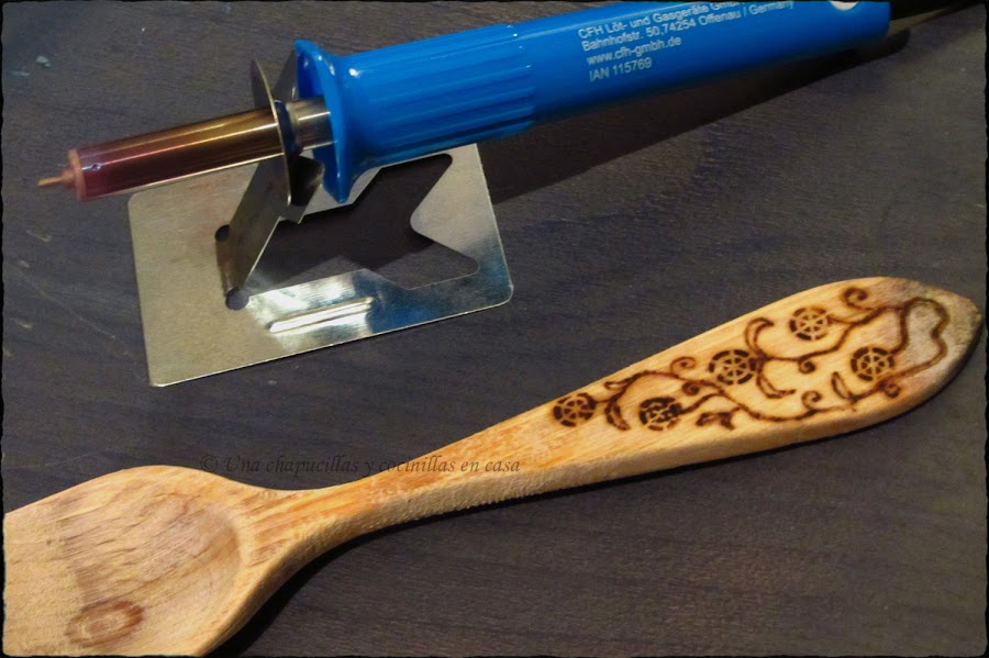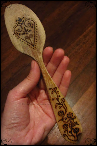 He comenzado haciendo algunos adornos en una cuchara de madera, como apreciareis en las fotos de mas adelante no son trazos muy perfilados y perfectos como algunos trabajos que hay por la red, que son autenticas obras de arte (y que nunca conseguiré ;-)) pero me gusta como ha quedado.