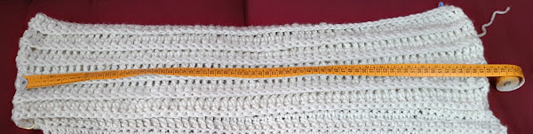 Despues hice un punto alto de tres sacadas o (punto alto portuges) por toda la cadeneta y en la segunda vuelta hice un punto alto de tres sacadas por detras de la labor asi se forma un punro en relieve que a mi me gusta. Hasta obtener 18 o 20 cm que dando de esta forma.