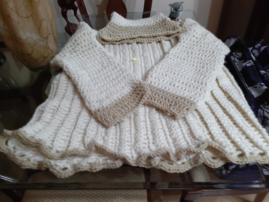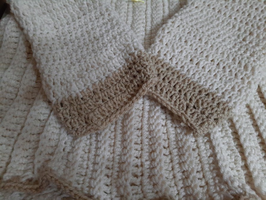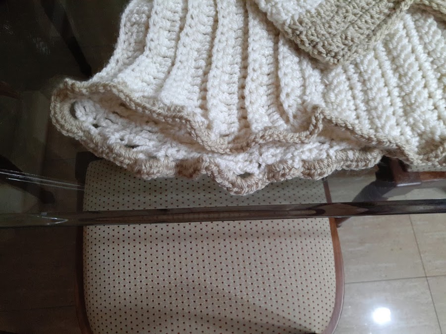 Despues segui tejiendo otros 20 cm PERO SOLO HASTA LA MITAD DE LA LABOR. Luego al llegar a los 20cm, hice una cadeneta de 60 cadenetas (ES DECIR LA MITAD DE MI LABOR) he hice la otra delantera y la otra trasera. Las uni con punto enano POR EL DERECHO.