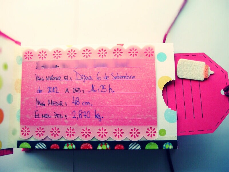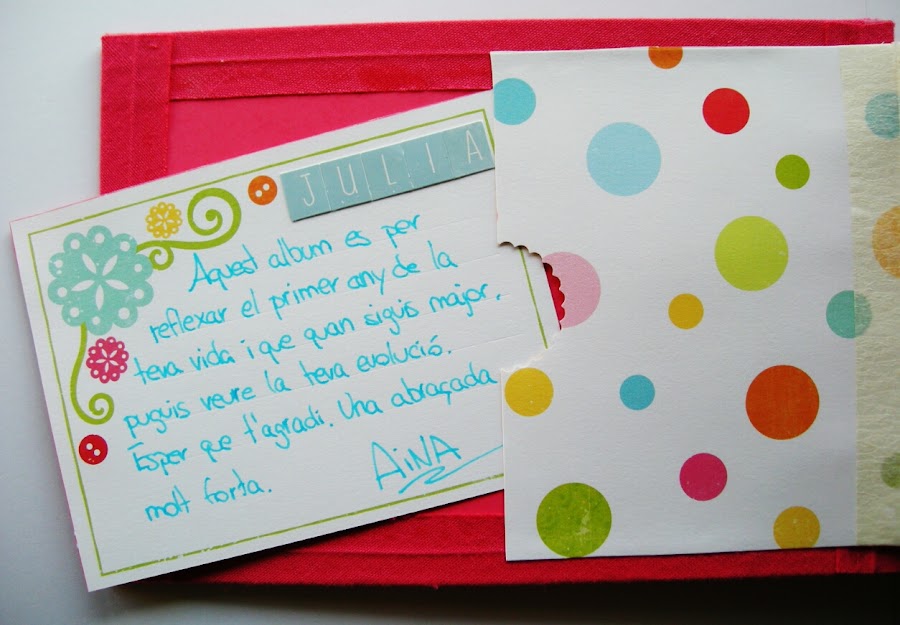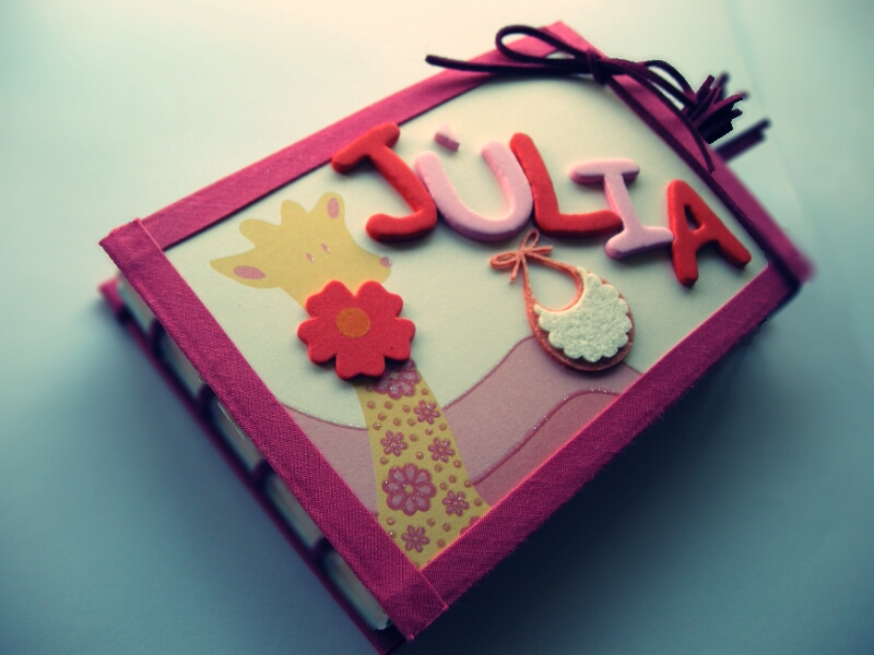 Este album, lo hice como regalo para mi ahijada (aunque ahora realmente es para mi hermano y mi cuñada :P). Siempre he pensado que me gustaría tener fotos de mi primer año, o saber cuándo me empezó a salir el primer diente, cuánto tiempo tenía cuando me cortaron el pelo por primera vez, etc. Así que no había excusa mejor para estrenarse en el scrap, un album del primer añito de vida de la pequeña Júlia, con todas esas curiosidades que me imagino que cuando sea mayor, le harán gracia.