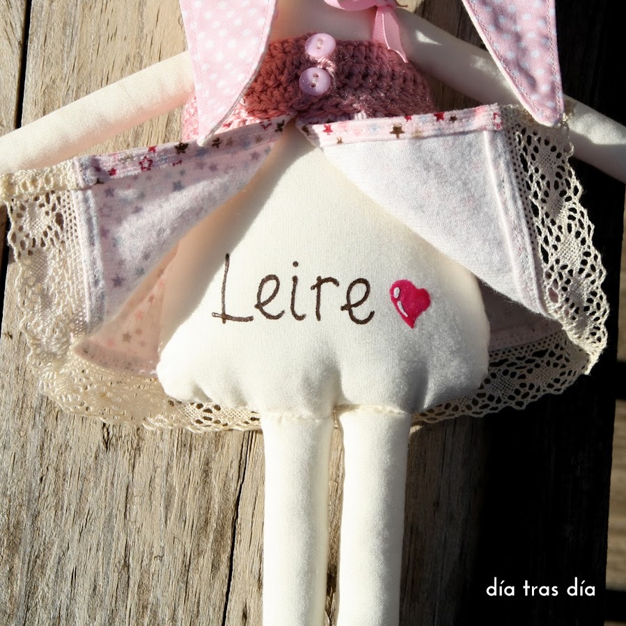 Y para que fuese un regalo personalizado, Mónica me pidió que en algún lugar llevase el nombre de su sobrina. Así ha resultado el conejito personalizadocon el nombre de Leire: