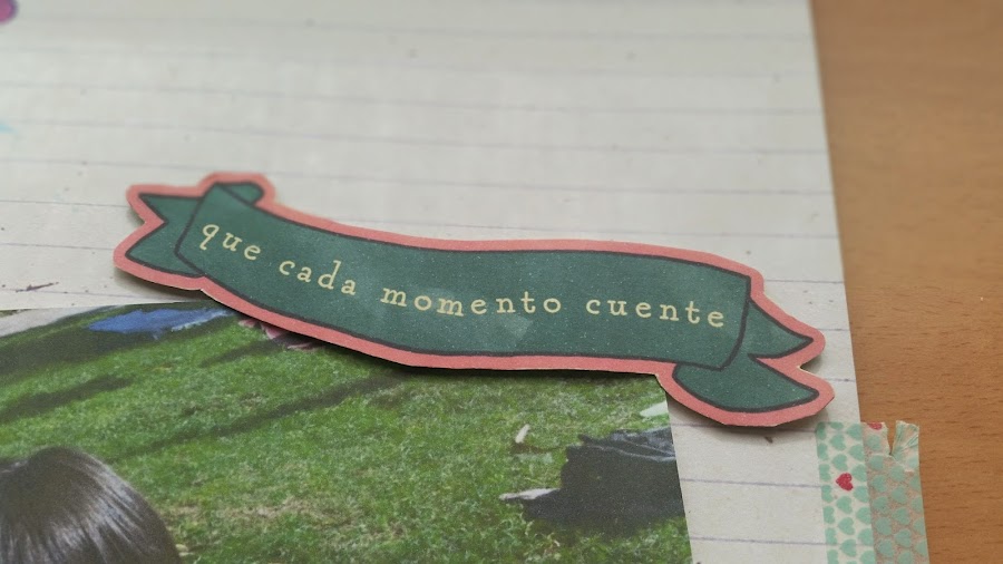 Lo último que puse fue uno de los cartelitos que había recortado previamente del papel y que formaba parte de uno de los bordes, le puse un trozo de washitape con la palabra "Sábado" y escribí con rotulador del mismo color la fecha. Así queda constancia del día en el que se hizo la foto.
