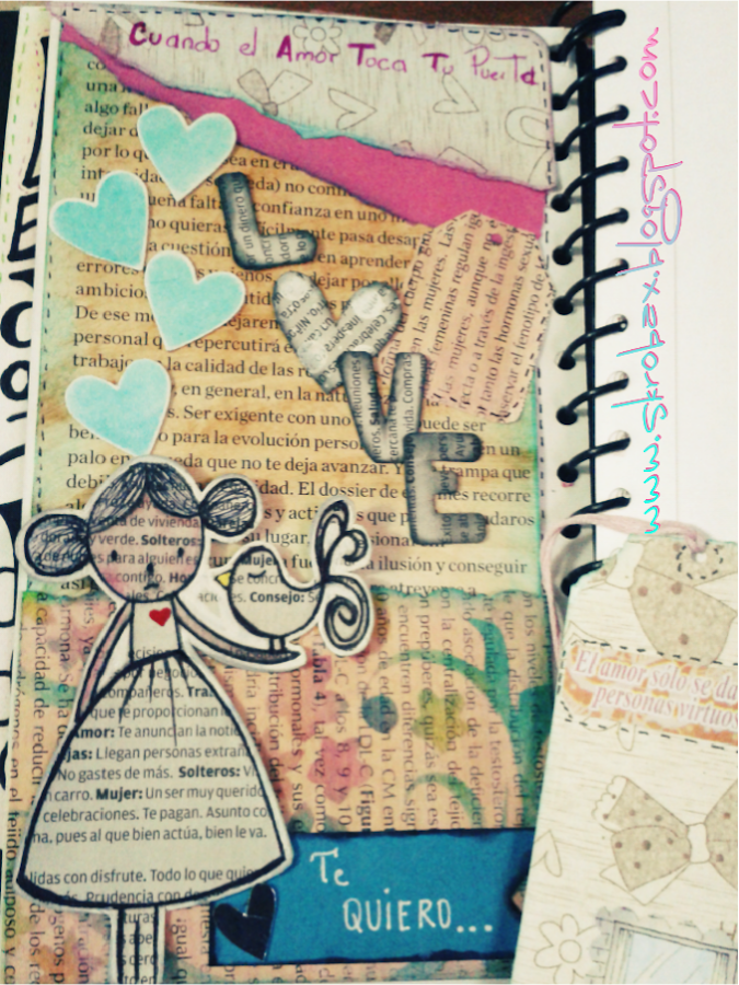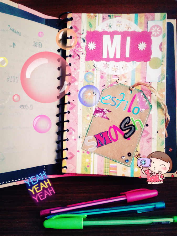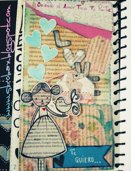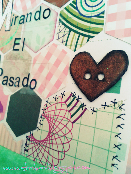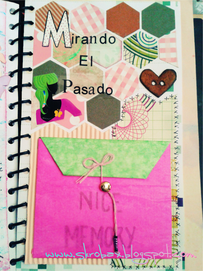 Hasta aquí es donde llevo mi smash pero seguiré subiendo foticos de las siguientes paginas, el requisito era documentar un recuerdo que esta en ese sobre rosa con verde que forre con papel de seda, recorte algunos exagonos , un corazón de imitación a la chapa de madera y las letras son recortes de hojas de acetatos impresas de cuando estudiaba en la universidad (como para que las quiero verdad? )