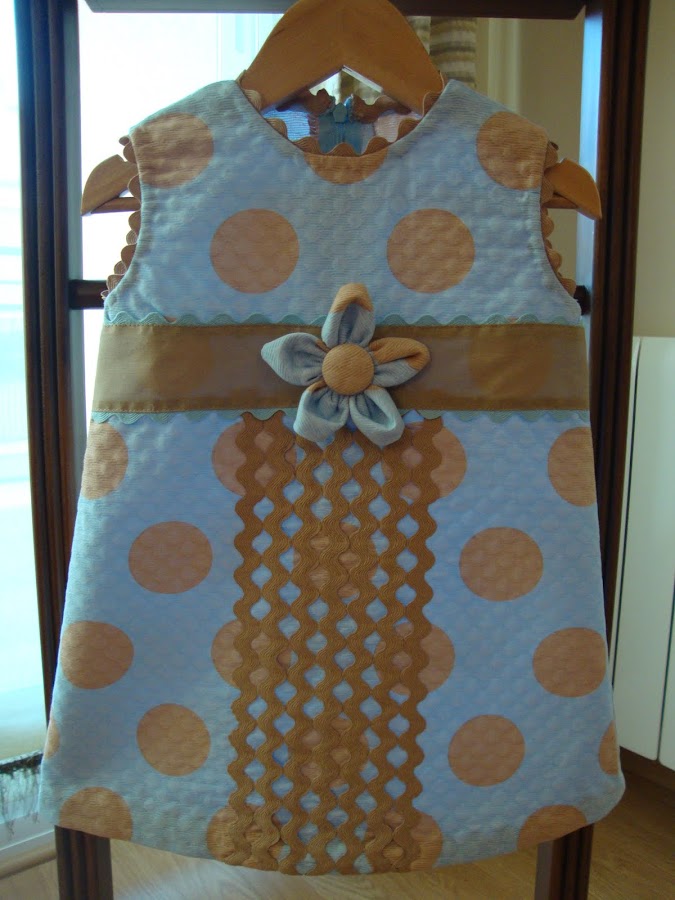 Este es el primer vestido que le hago a mi hija pequeña, bueno, en realidad puedo decir que es casi el primer vestido que hago. Y estoy mas que orgullosa, si hasta le he puesto la cremallera sin problemas... Es que una cosa es coser el fieltro y algun detalle a las camisetas, y otra hacer un vestido.
