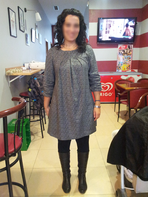 Este es mi segundo trabajito terminado en clases de costura. Es un vestido muy sencillo, pero para mi es todo un reto. No pensaba hacer nada para mi, al menos por ahora, pero mi profe insiste en que hay q aprender a medir, probar, crear los patrones... Y esto es lo primero q salió. Estoy muy contenta.