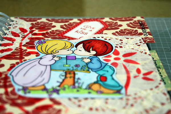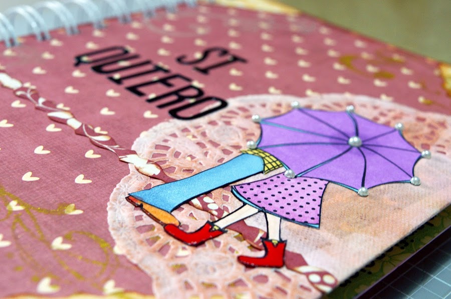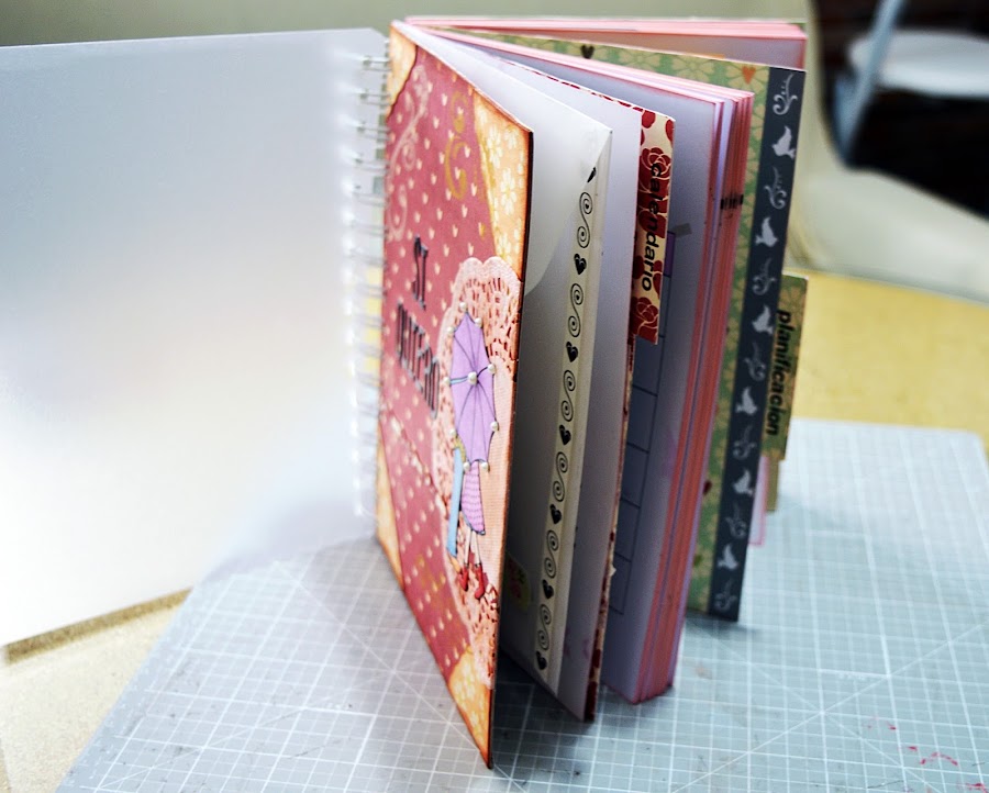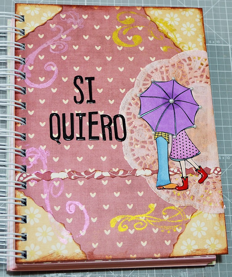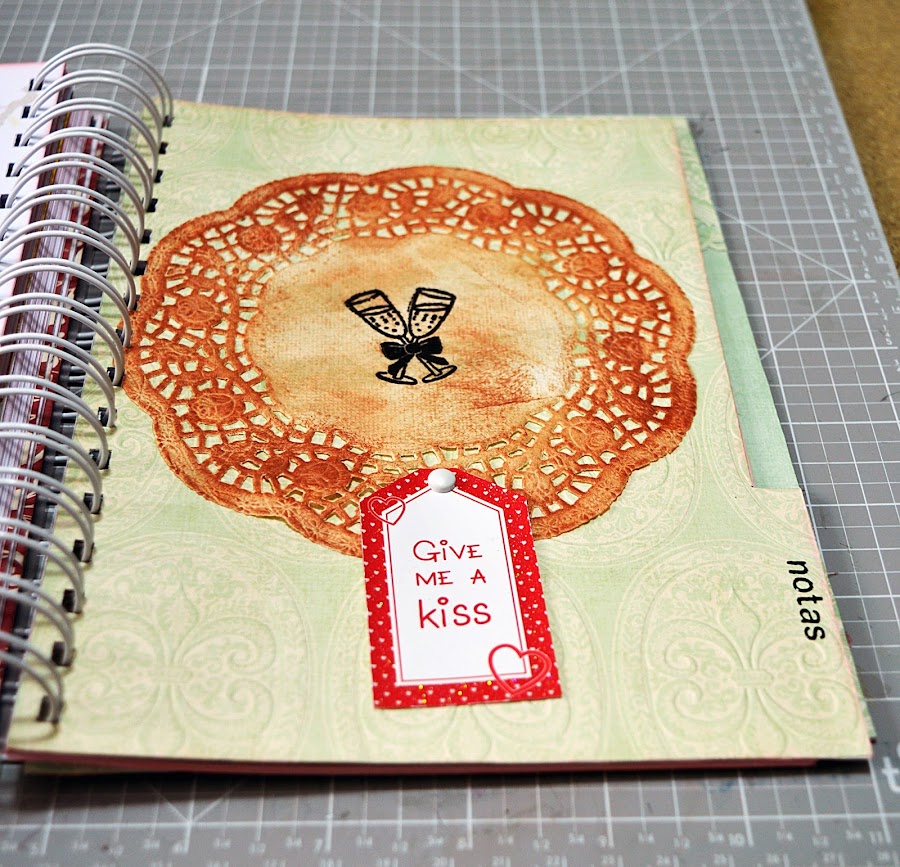 No me enrollo más y os dejo con las imágenes del la agenda a continuación. He utilizado papeles de J"adore de First Edition y como veréis algunos sellos, blondas y adornos varios. Los bordes de las páginas están entintados con tinta Distress (es la primera que se me gasta!!) y creo que le ha dado el toque final que buscaba. Y nada más, espero que os guste y que si os gusta o no o tenéis algo que decirme, me encantará leer vuestro comentario.