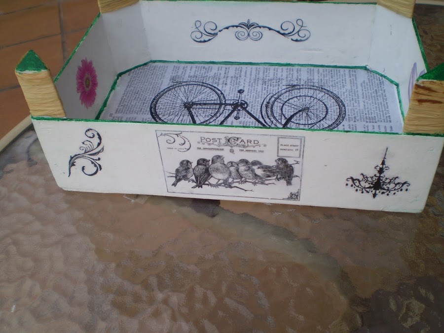 Puse unas flores con decoupage, para darle algo de color y protegí con dos manos de látex