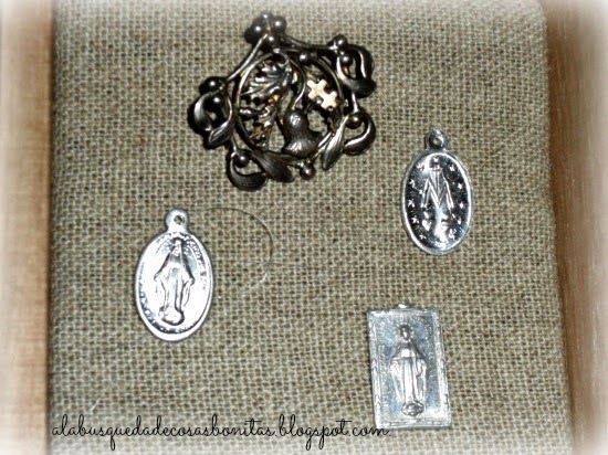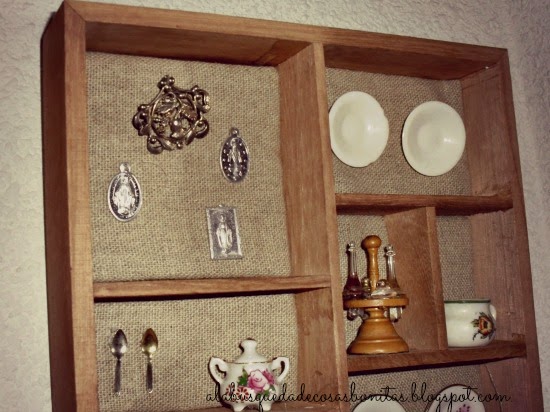 ¿Y qué es una caja de recuerdos? Bueno,es la forma que se me ha ocurrido para denominar este cajón irregular, en el que colocar, en cada compartimento, un detalle. Está a medio camino de los Cajones de Imprenta y las "Shadow Boxes", y me parece una forma preciosa de exponer esos pequeños recuerdos que tenía guardados en una bolsa.