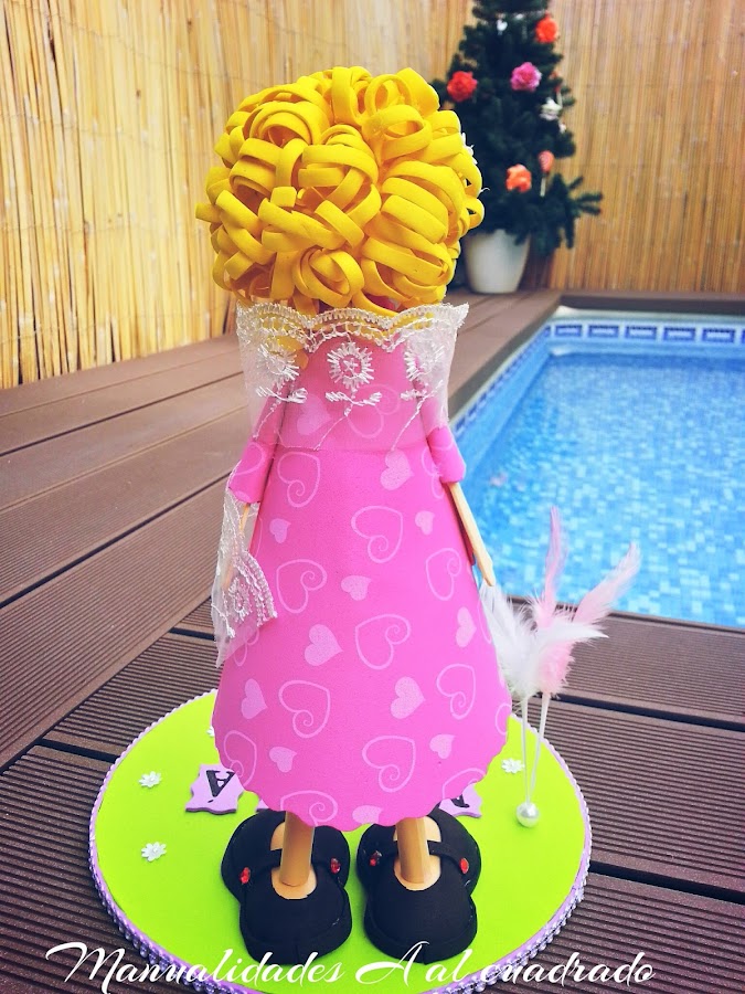Una vez que la he terminado, he comprobado que las fofuchas no son difíciles de hacer...bueno, tiene sus momentos ;-), pero sí que son muy laboriosas. Hay que dedicarles mucho tiempo y paciencia. No hay ninguna parte que se haga enseguida, desde el pelo, el pintar la cara o hacer una simple mano tiene su dedicación. También es verdad que al ser la primera, todo cuesta un poco más.
