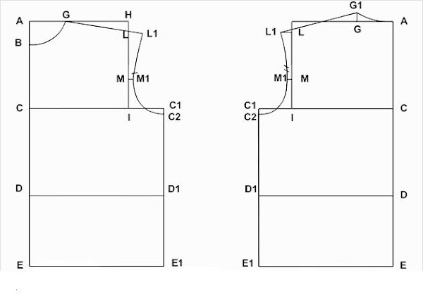Para la falda, utilicé esta forma, para que le hiciera capa en la parte de atrás.