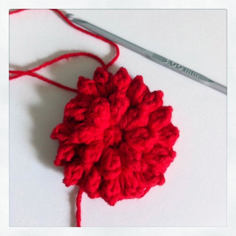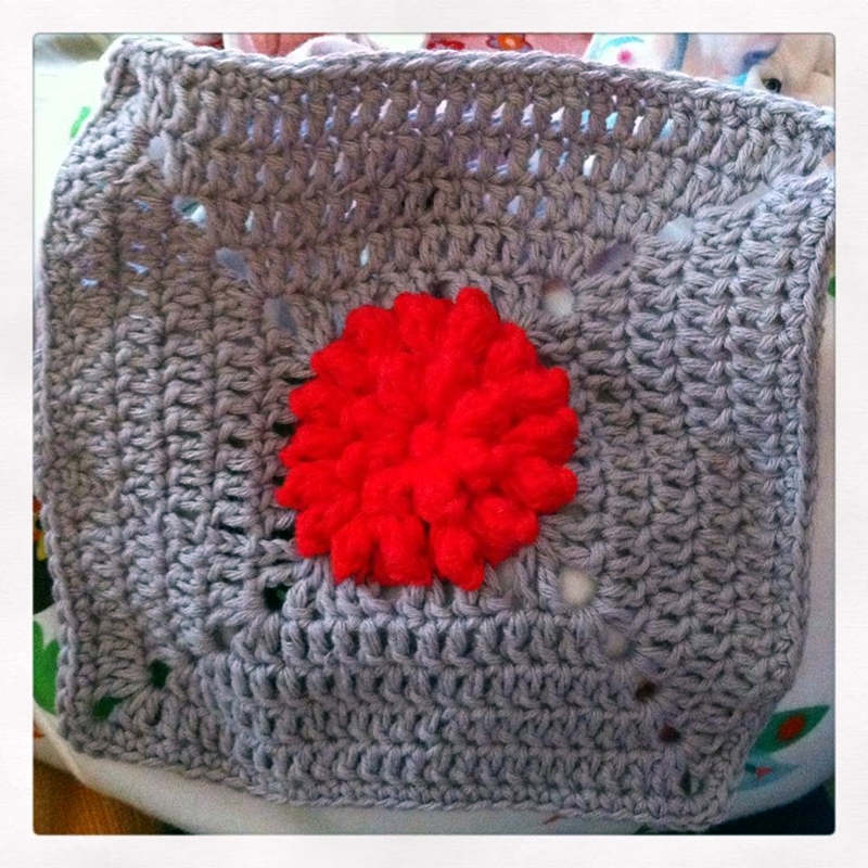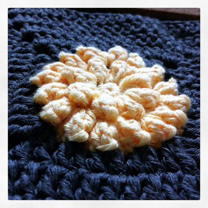 He de confesar que esta era una de las aplicaciones de la colcha que más miedo me daba. No suelo hacer cosas de ganchillo en relieve, y antes de ponerme con ella me parecía muy complicada. Pero siguiendo todas las instrucciones que da De Estraperlo en su blog, me ha resultado de lo más fácil y divertida. La flor en sí no es difícil de hacer una vez que controlas el bodoque.