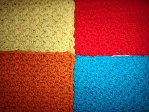 El caso es que a mi me costó al principio controlar la tensión (tengo tendencia a apretar) y me costó dar con la tensión adecuada para que se quedaran esponjosos. Cuando conseguí la tensión correcta, los cuadros se me quedaban con una forma rara. Menos mal que un buen bloqueo lo soluciona todo.