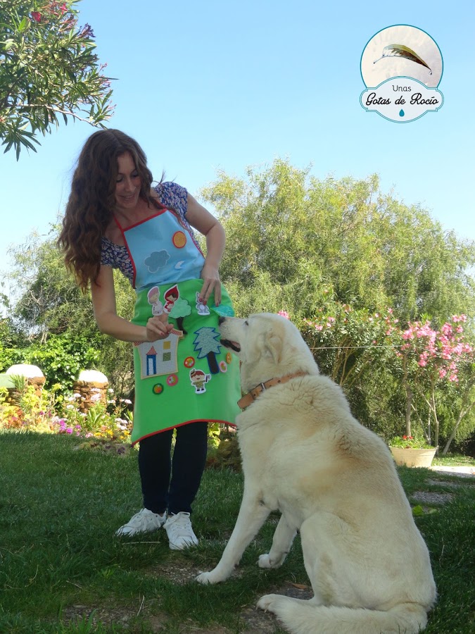 Como digo, todas las piezas son de quita y pon, de este modo el delantal no tiene elementos decorativos fijos que condicionen y puede servir para trabajar otros conceptos con piezas igualmente desmontables (tales como el cuerpo humano, las formas geométricas, o por supuesto otro cuento diferente).