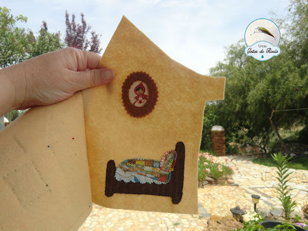 De todo el atrezzo lo que más me gusta es el interior de la casa de la abuelita, con su colcha de patchwork y el retrato de su nieta.