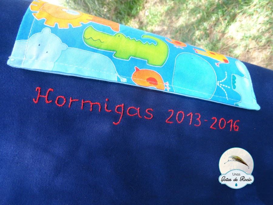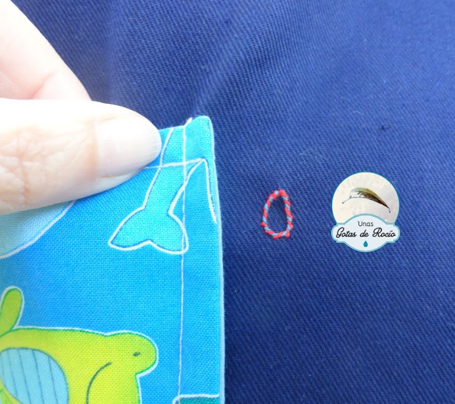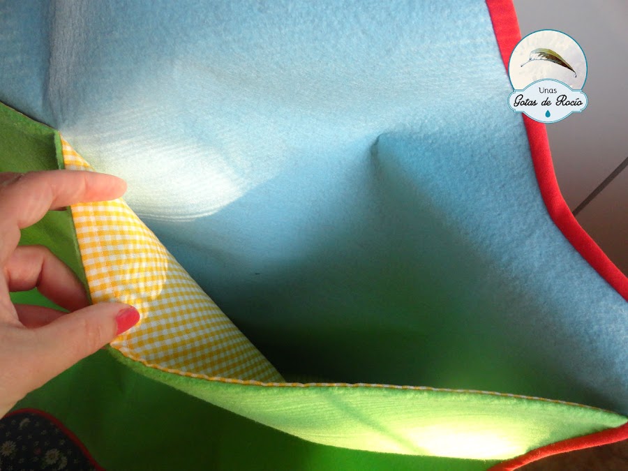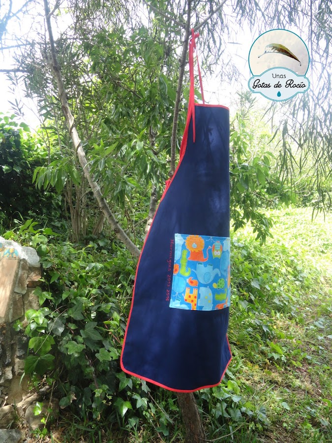 Y un último detalle es el revés del delantal. Con loneta azul y un gran bolsillo central, permite su uso para cualquier otra actividad. Sin restar protagonismo al lado principal, ha quedado también muy bonito.