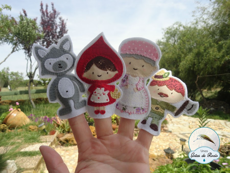 Todas los personajes están elaborados con telas de algodón a excepción del lobo, que lo hice de fieltro para que se le pudiera poner el disfraz.