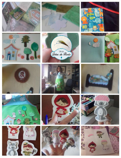 Margarita se puso en contacto conmigo como representante de las clases de sus dos hijos. Su idea era hacer dos delantales cuentacuentos exactamente iguales entre sí y parecidos a algunos que había visto por internet para regalar a sendas maestras. El cuento elegido: Caperucita Roja.