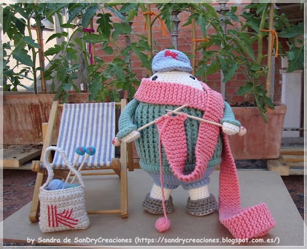 Hoy vengo a presentaros a un amigo blandito que tejí este pasado mes de junio y que desde ahora me acompaña mientras tejo o hago ganchillo ya que compartimos la misma pasión por las lanas e hilos