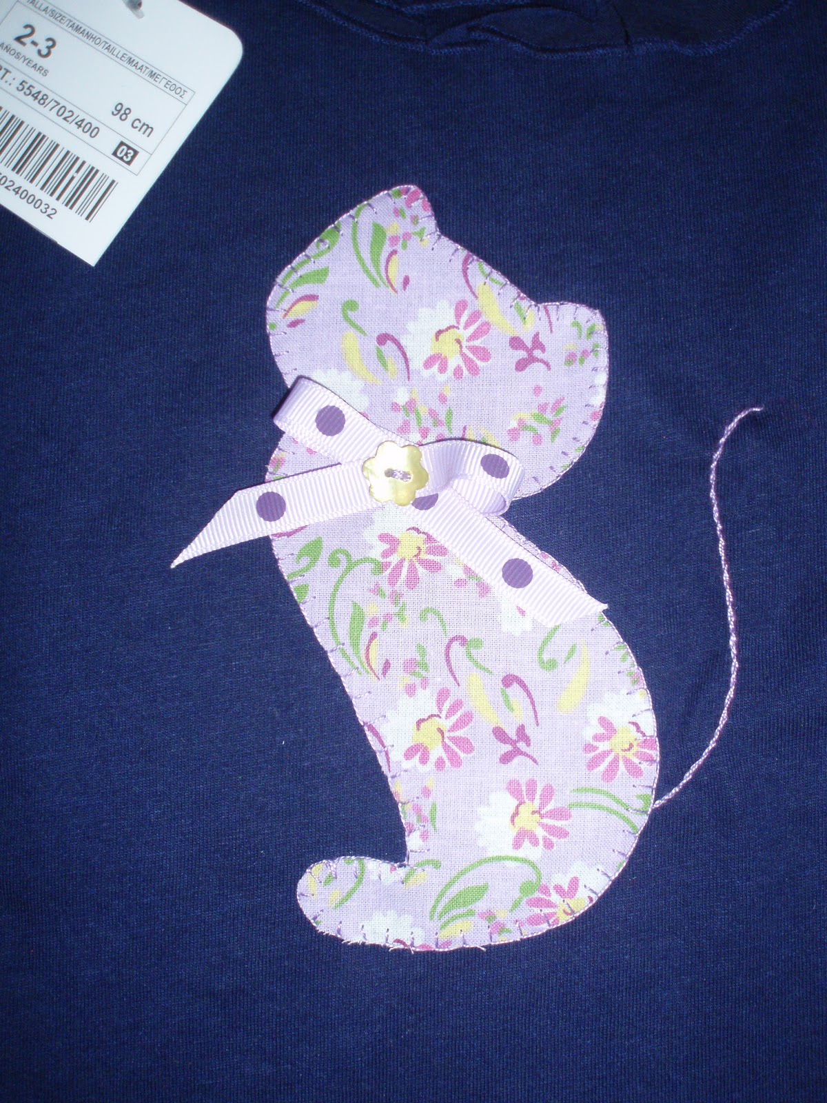Para Irene su niña le hice una camiseta tuneada con un lindo gatito.