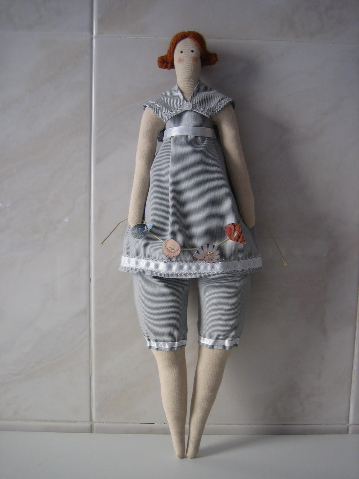 Bueno pues aqui os muestro mi segunda muñeca Tilda ,,,esta vez ha sido una bañista de hace unos años como podeis comprobar por el bañador que lleva.