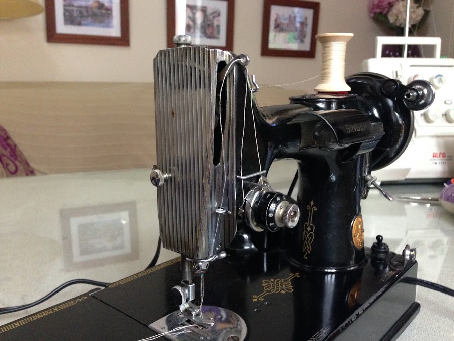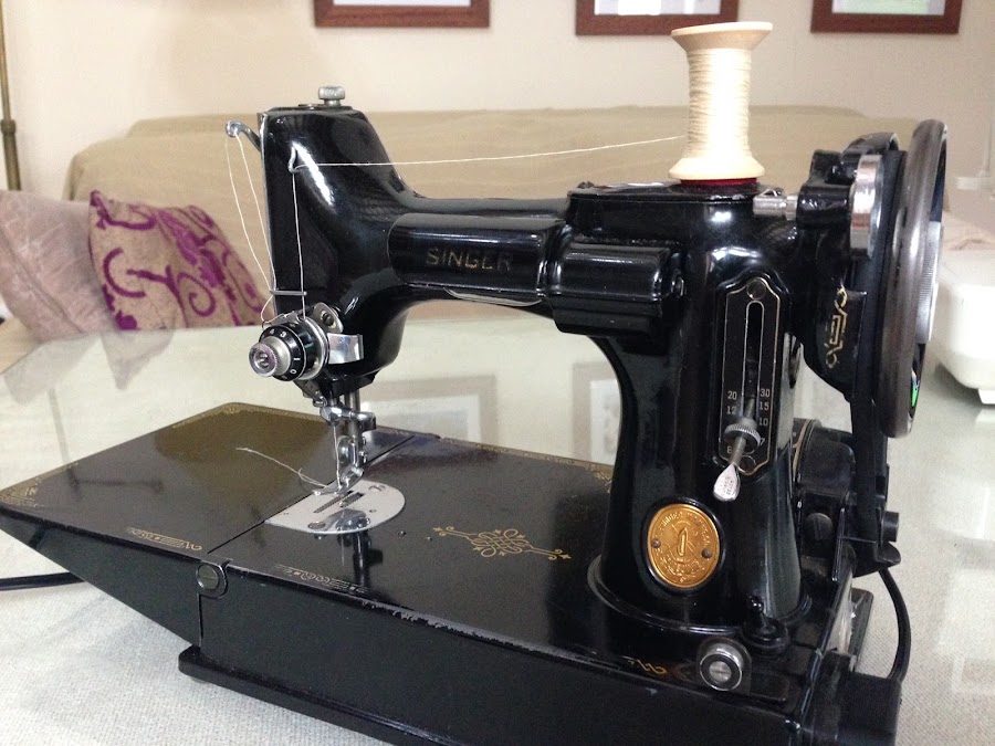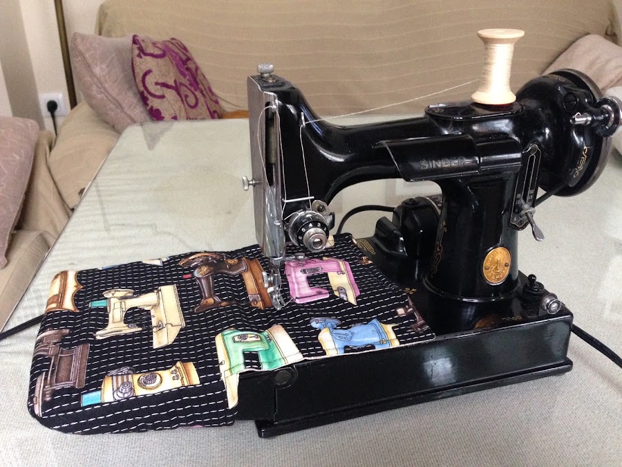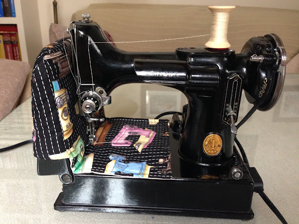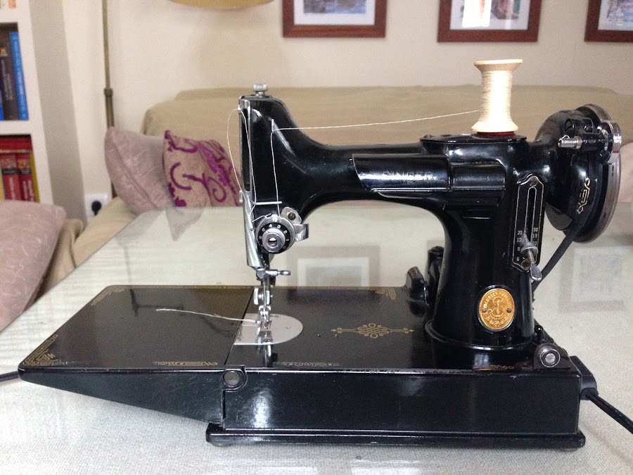 La funda acolchada que protege la mesa extensible está hecha con tela de Alexander Henry. Con el tiempo he ido comparando accesorios (prensatelas y canillas, sobre todo), pero en EEUU existen tiendas especializadas en repuestos originales y copias actuales, por lo que no es ningún problema encontrar piezas. Incluso tengo un motor de repuesto que conseguí en una puja en Ebay.