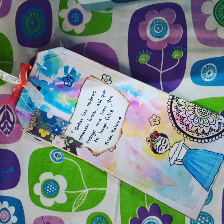 Como ven, utilice acuarelas para el fondo, el dibujo lo realice a mano junto con el medio mandala que asoma en un lateral.